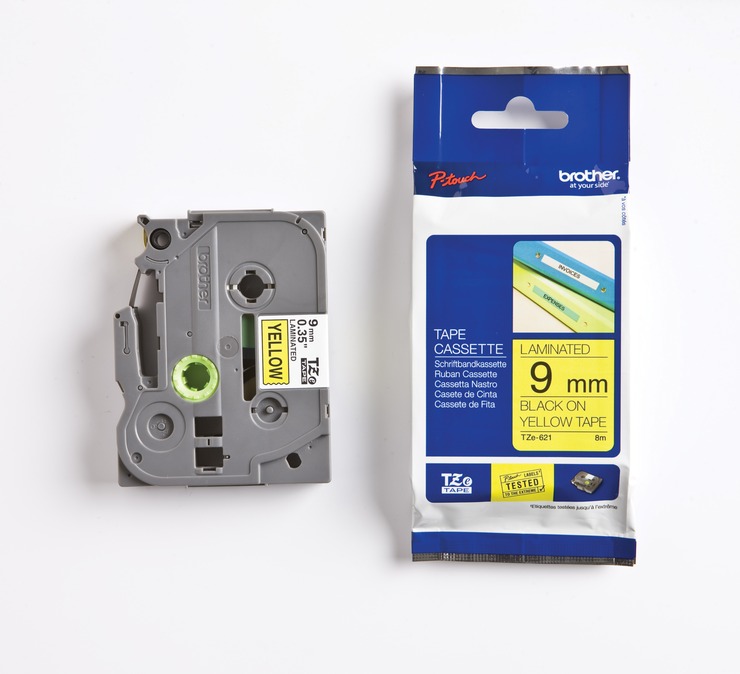 Brother Schriftbandkassette TZE621, laminiert, 8 m x 9 mm, schwarz / gelb