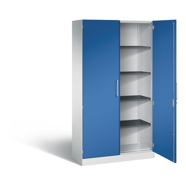 Stahl-Flügeltürenschrank Acurado-1000, Korpus aus stabiler Stahlkonstruktion mit hochwertiger Einbrennbeschichtung für hohe UV-Beständigkeit, mit Kunststoffgleitern als praktischer Schrank- und Fußbodenschutz, hohe Flexibilität der Inneneinrichtung durch Höhenverstellbarkeit im 15 mm Raster, Türen verstärkt für hohe Stabilität und verdeckten Schließstangen, Türaufhängung oben und unten in außen liegenden Scharnieren mit großzügigem Öffnungswinkel ca. 180 Grad, zueinanderschlagend für... (mehr)? Papersmart hilft Ihnen, den besten Anbieter für Ihren gesamten Warenkorb zu ermitteln.