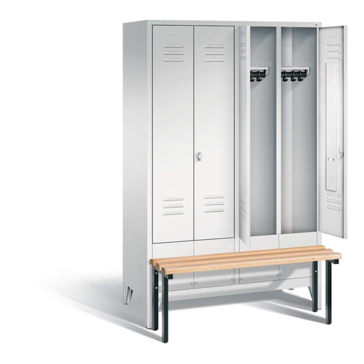 Garderobenschrank Serie Classic mit untergebauter Sitzbank, Höhe 2090 mm, lichtgrau/lichtblau • Stabile Stahlblechkonstruktion Erhöhter Korrosionsschutz durch Schrankfüße aus Kunststoff. • Klassische Schwarz/weiß-Trennung Getrennte Aufbewahrung von Berufs-/ Privatkleidung. • Praktische Türen Paarweise zueinanderschlagend, mit Anschlagsdämpfer. In Drehbolzen gelagert mit senkrechter Kastenverstärkung. Mit Drehriegelverschluss zur Verwendung eines Vorhängeschlosses, ... (mehr)? Papersmart hilft Ihnen, den besten Anbieter für Ihren gesamten Warenkorb zu ermitteln.