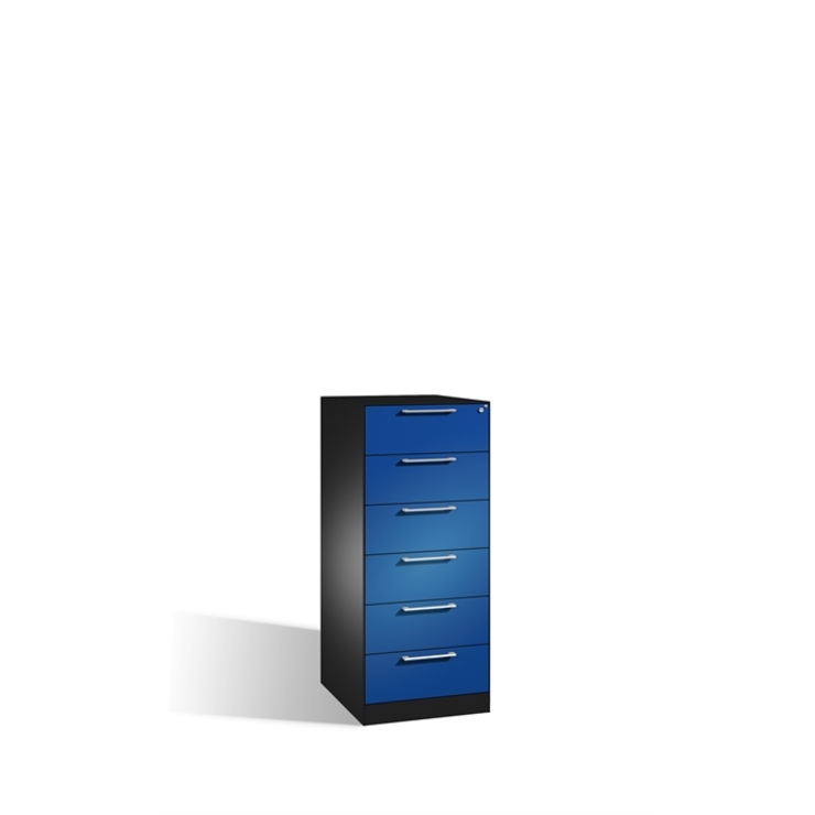 Stahl-Schubladenschrank Asisto, als Karteischrank, Korpus aus stabiler Stahlkonstruktion, körperschallgedämpft für angenehmes Geräuschverhalten, mit filigraner Kantenoptik und hochwertiger Einbrennbeschichtung für hohe UV- Beständigkeit, mit integrierter Niveauregulierung von innen bedienbar, 6 voll ausziehbare Schubladen, 3-bahnig, für Karteikarten DIN A5 quer, mit 2 verstellbaren Pendelblechen je Bahn, langlebige Teleskopschienen mit Parallelsteuerung, End-Selbst-Einzug und... (mehr)? Papersmart hilft Ihnen, den besten Anbieter für Ihren gesamten Warenkorb zu ermitteln.