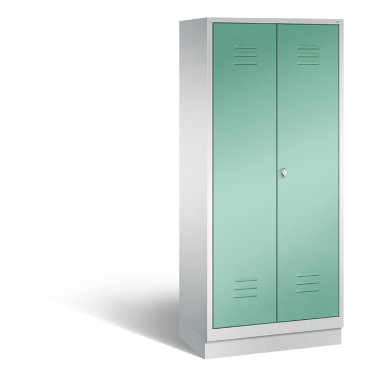 Stahl-Garderobenschrank Evolo, als Straßen- und Berufskleidungsschrank, 2 Abteile für 1 Person, Abteilbreite 300 mm, Türen zueinanderschlagend für gemeinsamen Verschluss, Korpus aus stabiler Stahlkonstruktion mit hochwertiger Einbrennbeschichtung für hohe UV- und Korrosionsbeständigkeit, innen 1 durchgehender Ablageboden, darunter je Abteil 1 stabile Garderobenstange aus Ovalprofil mit 3 verdrehsicheren Schiebehaken, Schrankboden hinten mit großflächigem Luftdurchlass für optimale... (mehr)? Papersmart hilft Ihnen, den besten Anbieter für Ihren gesamten Warenkorb zu ermitteln.