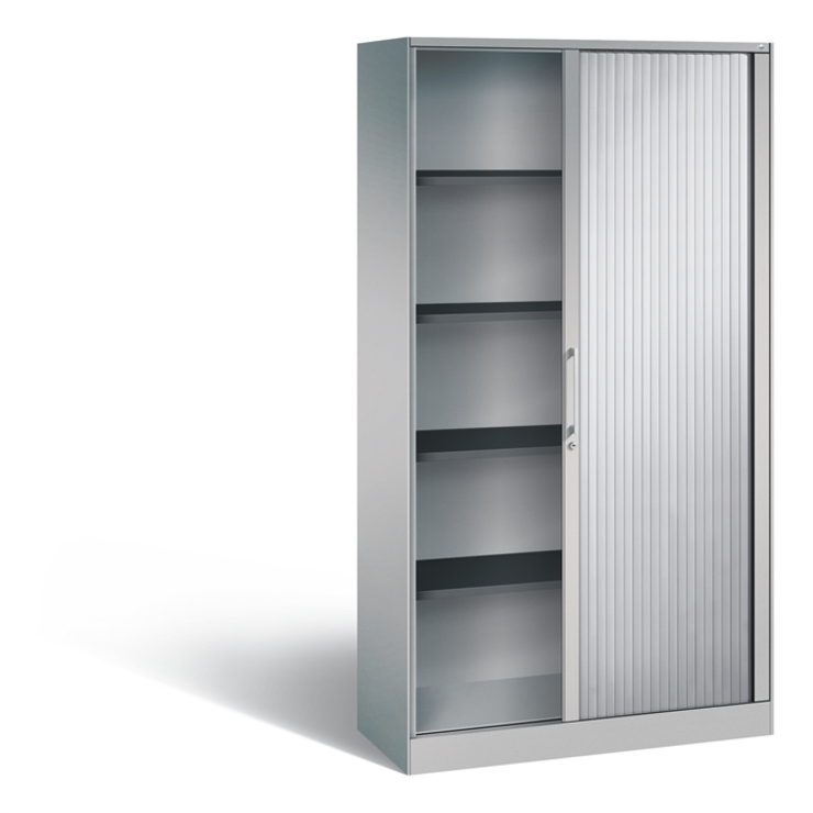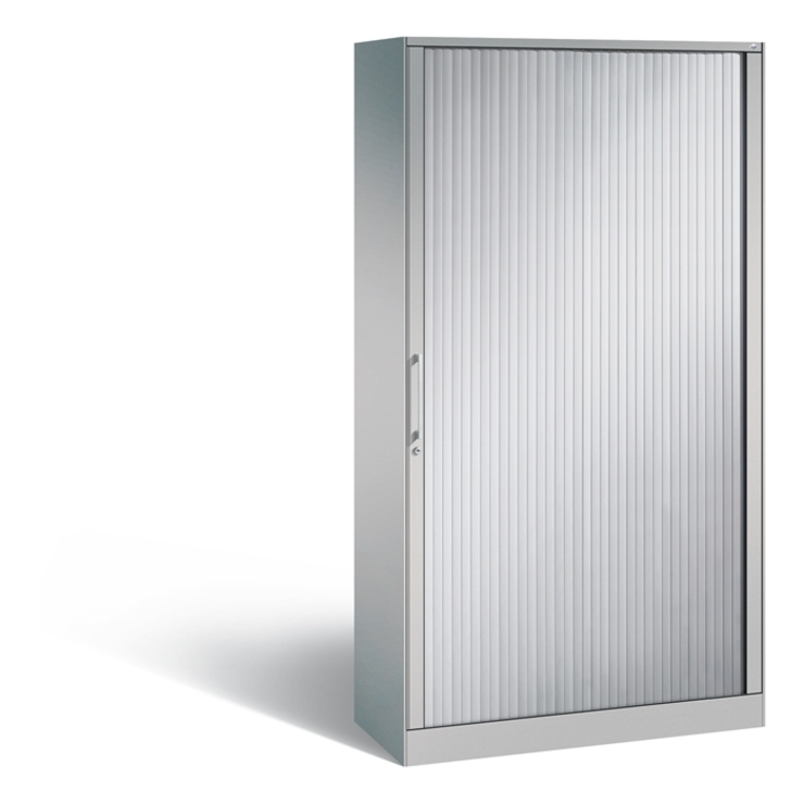 Stahl-Rollladenschrank Asisto, Korpus aus stabiler Stahlkonstruktion mit filigraner Kantenoptik und hochwertiger Einbrennbeschichtung für hohe UV-Beständigkeit, mit integrierter Niveauregulierung, bequem von innen bedienbar, hohe Flexibilität der Inneneinrichtung durch Höhenverstellbarkeit im 15 mm Raster, 1 Wechselzylinder matt vernickelt mit 2 Schlüsseln, 1 Ergonomischer Design-Bügelgriff für einfache Bedienung, aus Metall, matt vernickelt, 4 Einlegeböden aus Stahl lackiert, mit... (mehr)? Papersmart hilft Ihnen, den besten Anbieter für Ihren gesamten Warenkorb zu ermitteln.