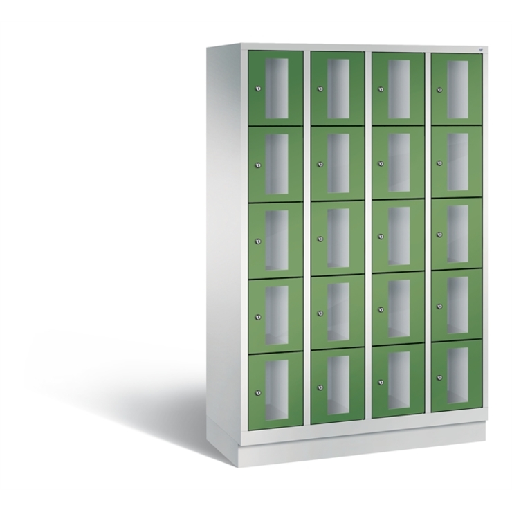 Stahl-Fächerschrank Classic, 4 Abteile mit 5 Fächern, Abteilbreite 300 mm, Korpus aus stabiler Stahlkonstruktion mit hochwertiger Einbrennbeschichtung für hohe UV- und Korrosionsbeständigkeit, auf 150 mm hohen Füßen aus Kunststoff für erweiterten Korrosionsschutz, 20 Zylinderschlösser mit je 2 Schlüsseln, Schließkreis bis 1000 verschiedene Schließungen, 1 Türen mit Sichtfenster aus Acrylglas für direkten Einblick, Türaufhängung in Drehbolzen mit Öffnungswinkel von ca. 110 Grad, inkl.... (mehr)? Papersmart hilft Ihnen, den besten Anbieter für Ihren gesamten Warenkorb zu ermitteln.