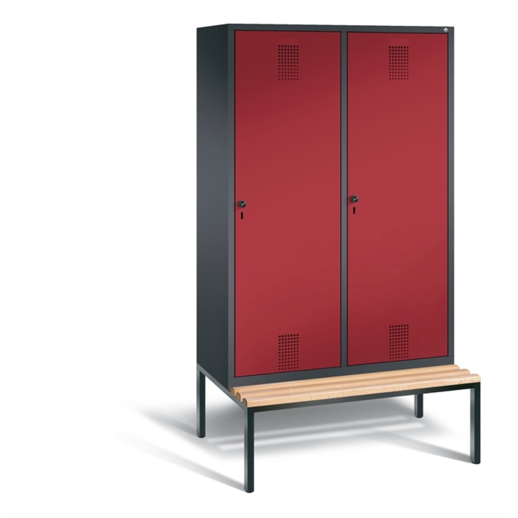 Doppelstöckiger Stahl-Garderobenschrank Evolo, 1 Abteil mit 2 Fächern, Abteilbreite 300 mm, Korpus aus stabiler Stahlkonstruktion mit hochwertiger Einbrennbeschichtung für hohe UV- und Korrosionsbeständigkeit, innen je Fach 1 Ablageboden, darunter 1 stabile Garderobenstange aus Ovalprofil mit 3 verdrehsicheren Schiebehaken, auf untergebauter Sitzbank, Gestell aus stabilem Vierkant-Stahlrohr 30 x 30 mm, mit verstellbaren Bodengleitern für einfachen Niveauausgleich, 2 Ergonomische... (mehr)? Papersmart hilft Ihnen, den besten Anbieter für Ihren gesamten Warenkorb zu ermitteln.