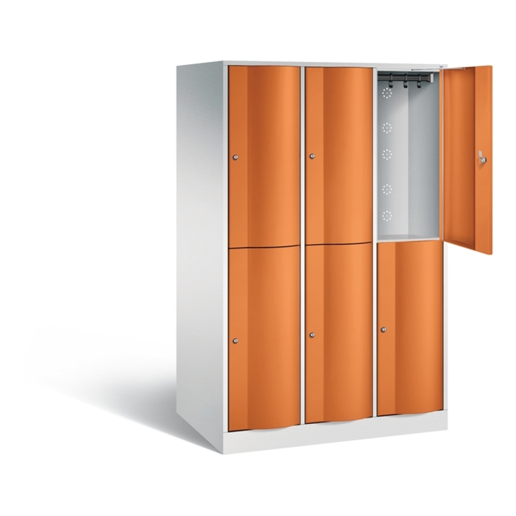 Doppelstöckiger Stahl-Garderobenschrank Classic, 3 Abteile mit 2 Fächern, Abteilbreite 400 mm, Korpus aus stabiler Stahlkonstruktion mit hochwertiger Einbrennbeschichtung für hohe UV- und Korrosionsbeständigkeit, innen je Fach 1 stabile Garderobenstange aus Ovalprofil mit 3 verdrehsicheren Schiebehaken, auf 100 mm hohem Sockel, mit Kunststoffgleitern als praktischer Schrank- und Fußbodenschutz, vorne zurückgesetzt, 6 Drehriegel für Vorhängeschlösser, 6 Türen mit Anschlagsdämpfer und... (mehr)? Papersmart hilft Ihnen, den besten Anbieter für Ihren gesamten Warenkorb zu ermitteln.