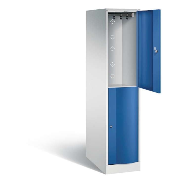 Stahl-Garderobenschrank Classic, 2 Abteile, Abteilbreite 400 mm, Korpus aus stabiler Stahlkonstruktion mit hochwertiger Einbrennbeschichtung für hohe UV- und Korrosionsbeständigkeit, innen je Abteil 1 Ablageboden, darunter 1 stabile Garderobenstange aus Ovalprofil mit 3 verdrehsicheren Schiebehaken, Schrankboden hinten mit Lüftungsöffnungen für optimale Luftzirkulation, auf 150 mm hohen Füßen aus Kunststoff für erweiterten Korrosionsschutz, 2 Zylinderschlösser mit je 2 Schlüsseln,... (mehr)? Papersmart hilft Ihnen, den besten Anbieter für Ihren gesamten Warenkorb zu ermitteln.