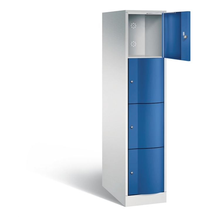 Stahl-Schließfachschrank Resisto, XL, 1 Abteil mit 4 Fächern, Korpus aus stabiler Stahlkonstruktion mit hochwertiger Einbrennbeschichtung für hohe UV- und Korrosionsbeständigkeit, Spezialtüren aus 1,5 mm Stahl, mit Wölbung nach vorne, absolut stabil und vandalismussicher, mit Anschlagsdämpfer, Türaufhängung durchgängig mit robustem Drehstangen- Scharnier, rechts angeschlagen, Rückwand mit großflächigem Luftdurchlass und 18 mm Wandabstandshaltern, auf 100 mm hohem Sockel mit 30 mm... (mehr)? Papersmart hilft Ihnen, den besten Anbieter für Ihren gesamten Warenkorb zu ermitteln.