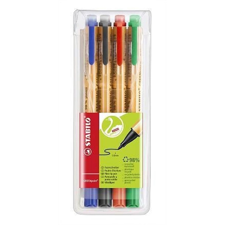 Filzschreiber STABILO® GREENpoint® Etui, 0,8 mm, Etui mit 4 Stiften