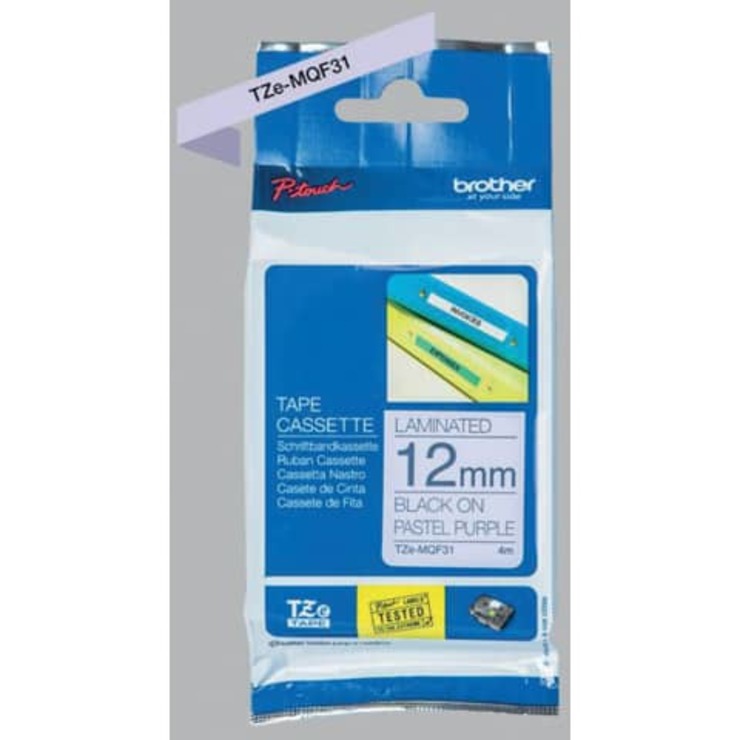 Das Original Brother TZe-MQF31 Schriftband mit schwarzer Schrift auf pastell lila Hintergrund ist perfekt lesbar und vielseitig einsetzbar, sowohl im Innen- als auch im Außenbereich. Dank seiner laminierten Oberfläche mit mattem Finish ist das Schriftband nicht nur reflexionsfrei, sondern auch wisch-, wetter- und kratzfest und hält selbst extremen Bedingungen hinsichtlich Abrieb, Temperaturen, Chemikalien und UV-Licht stand. Bandfarbe pastell lila / Schriftfarbe schwarz.