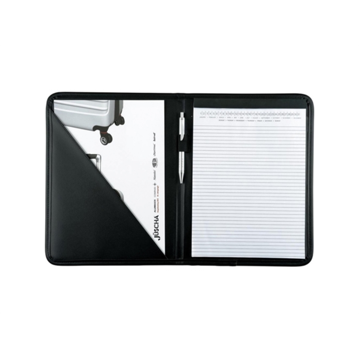 Praktische Schreibmappe umrandet mit einer Ziernaht. Mit 2 Visitenkartenfächer.