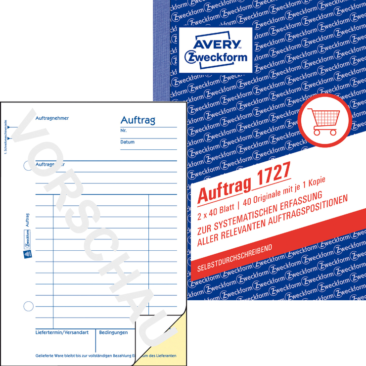Avery Zweckform Auftrag, 1. und 2. Blatt bedruckt, SD, DIN A6, 2x40 Blatt