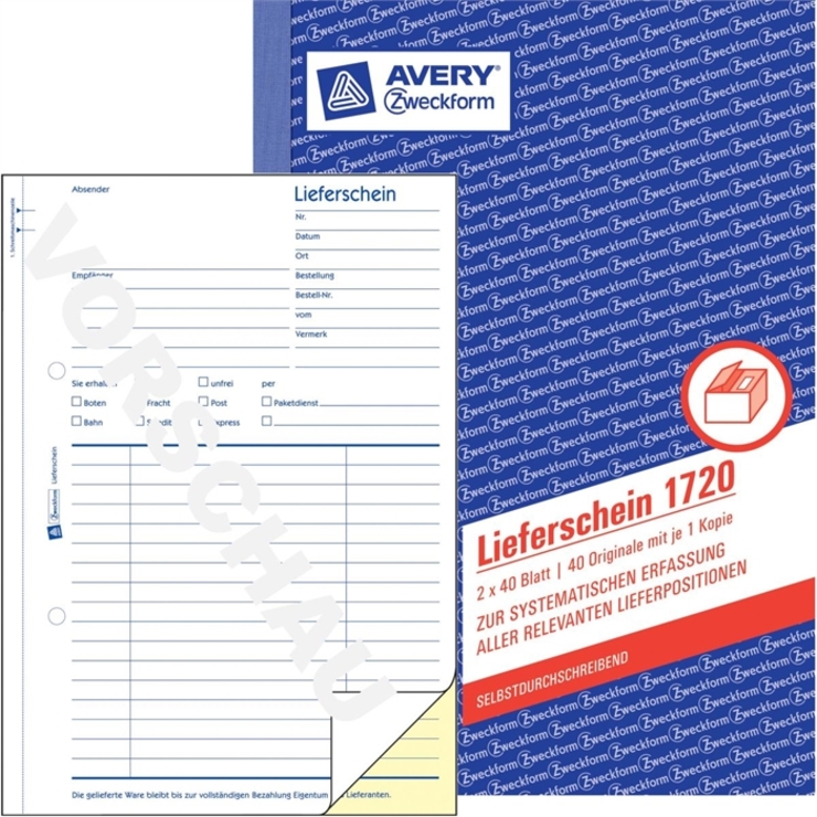 Avery Zweckform Lieferschein, 1. und 2. Blatt bedruckt, SD, DIN A5, 2x40 Blatt