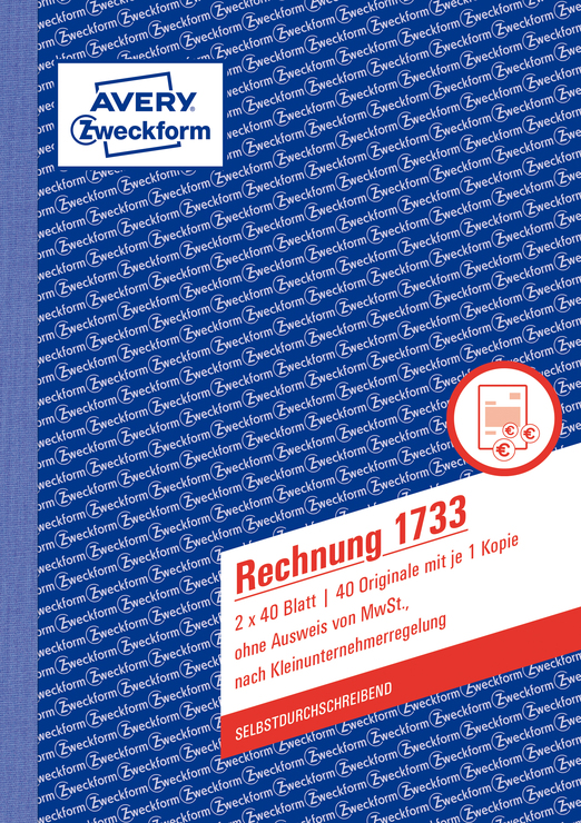 Avery Zweckform Rechnung Kleinunternehmer, selbstdurchschreibend, DIN A5, 2x40 Blatt
