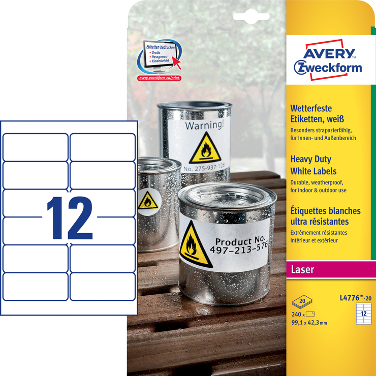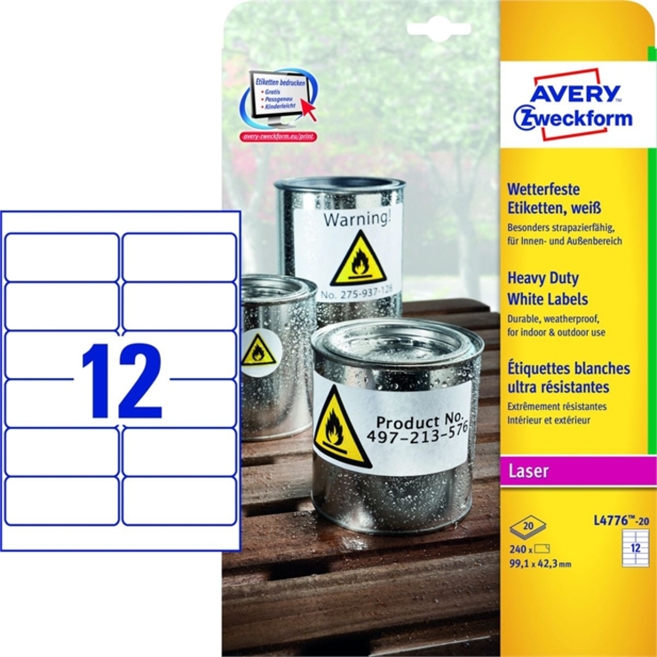 Avery Zweckform Wetterfeste Etiketten aus Polyester, weiss, 99,1x42,3mm, 240Etik.