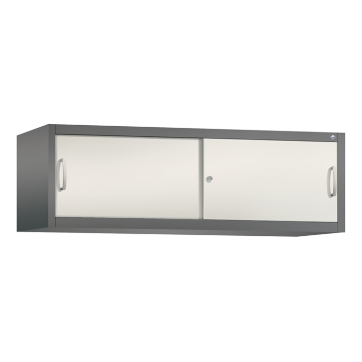 Stahl-Schiebetürenschrank Acurado-2000, als Aufsatzschrank, Korpus aus stabiler Stahlkonstruktion mit hochwertiger Einbrennbeschichtung für hohe UV-Beständigkeit, mit Kunststoffgleitern als praktischer Schrank- und Fußbodenschutz, hohe Flexibilität der Inneneinrichtung durch Höhenverstellbarkeit im 15 mm Raster, Türen verstärkt für hohe Stabilität, leichtgängige Bedienung durch Leichtlaufrollen in spezieller Schienenführung, mit Mitteltrennwand, 1 Wechselzylinder matt vernickelt mit 2... (mehr)? Papersmart hilft Ihnen, den besten Anbieter für Ihren gesamten Warenkorb zu ermitteln.