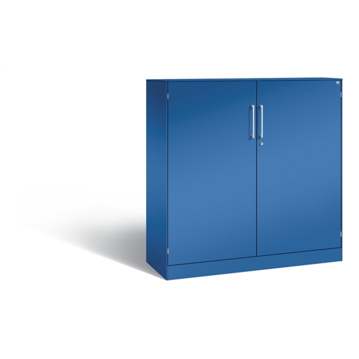 Stahl-Flügeltürenschrank Asisto, als Sideboard, Korpus aus stabiler Stahlkonstruktion mit filigraner Kantenoptik und hochwertiger Einbrennbeschichtung für hohe UV-Beständigkeit, mit integrierter Niveauregulierung, bequem von innen bedienbar, hohe Flexibilität der Inneneinrichtung durch Höhenverstellbarkeit im 15 mm Raster, 1 Wechselzylinder matt vernickelt mit 2 Schlüsseln, 2 Ergonomische Design-Bügelgriffe für einfache Bedienung, aus Metall, matt vernickelt, 1 Abdeckplatte aus Stahl,... (mehr)? Papersmart hilft Ihnen, den besten Anbieter für Ihren gesamten Warenkorb zu ermitteln.