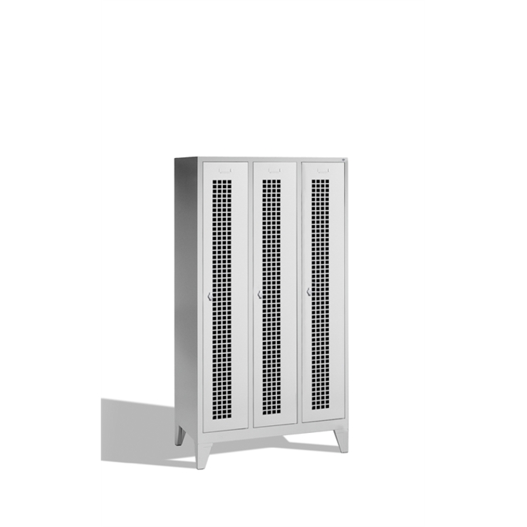 Stahl-Garderobenschrank Classic, 4 Abteile mit 3 Fächern, Abteilbreite 300 mm, Korpus aus stabiler Stahlkonstruktion mit hochwertiger Einbrennbeschichtung für hohe UV- und Korrosionsbeständigkeit, auf 150 mm hohen Füßen aus Kunststoff für erweiterten Korrosionsschutz, 12 Zylinderschlösser mit je 2 Schlüsseln, Schließkreis bis 1000 verschiedene Schließungen, Türen mit Anschlagsdämpfer, Türaufhängung in Drehbolzen, Maße (H x B x T): 1850 x 1190 x 500 mm, Korpus: RAL 7035 Lichtgrau, Türen... (mehr)? Papersmart hilft Ihnen, den besten Anbieter für Ihren gesamten Warenkorb zu ermitteln.