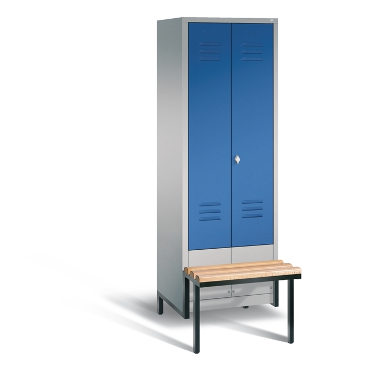 Stahl-Garderobenschrank Classic, auf untergebauter Sitzbank, Gestell aus stabilem Vierkant-Stahlrohr 30 x 30 mm, mit verstellbaren Bodengleitern für einfachen Niveauausgleich, 2 Abteile, Abteilbreite 400 mm, z-förmig unterteilt für 4 Personen, Korpus aus stabiler Stahlkonstruktion mit hochwertiger Einbrennbeschichtung für hohe UV- und Korrosionsbeständigkeit, innen komfortable Hängemöglichkeit langer Kleidungsstücke trotz geringem Platzangebot, je Fach 1 stabile Garderobenstange aus... (mehr)? Papersmart hilft Ihnen, den besten Anbieter für Ihren gesamten Warenkorb zu ermitteln.