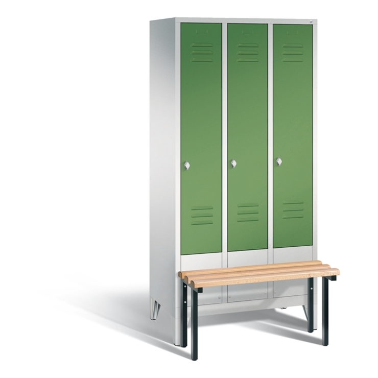 Stahl-Garderobenschrank Evolo, als Straßen- und Berufskleidungsschrank, 2 Abteile für 1 Person, Abteilbreite 300 mm, Türen zueinanderschlagend für gemeinsamen Verschluss, Korpus aus stabiler Stahlkonstruktion mit hochwertiger Einbrennbeschichtung für hohe UV- und Korrosionsbeständigkeit, innen 1 durchgehender Ablageboden, darunter je Abteil 1 stabile Garderobenstange aus Ovalprofil mit 3 verdrehsicheren Schiebehaken, Schrankboden hinten mit großflächigem Luftdurchlass für optimale... (mehr)? Papersmart hilft Ihnen, den besten Anbieter für Ihren gesamten Warenkorb zu ermitteln.