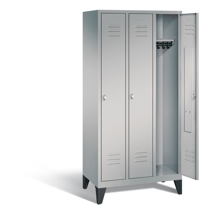 Doppelstöckiger Stahl-Garderobenschrank Evolo, 3 Abteile mit je 2 Fächern, Abteilbreite 400 mm, Korpus aus stabiler Stahlkonstruktion mit hochwertiger Einbrennbeschichtung für hohe UV- und Korrosionsbeständigkeit, innen je Fach 1 stabile Garderobenstange aus Ovalprofil mit 3 verdrehsicheren Schiebehaken, auf 100 mm hohem Sockel, mit Kunststoffgleitern als praktischer Schrank- und Fußbodenschutz, vorne zurückgesetzt, 6 Ergonomische Sicherheits-Drehriegel für Vorhängeschlösser inkl.... (mehr)? Papersmart hilft Ihnen, den besten Anbieter für Ihren gesamten Warenkorb zu ermitteln.