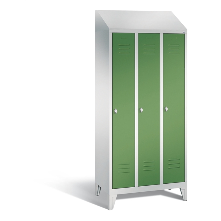 Stahl-Garderobenschrank Classic, 3 Abteile mit 4 Fächern, Abteilbreite 300 mm, Korpus aus stabiler Stahlkonstruktion mit hochwertiger Einbrennbeschichtung für hohe UV- und Korrosionsbeständigkeit, auf 150 mm hohen Füßen aus Kunststoff für erweiterten Korrosionsschutz, 12 Zylinderschlösser mit je 2 Schlüsseln, Schließkreis bis 1000 verschiedene Schließungen, Türen mit Anschlagsdämpfer, Türaufhängung in Drehbolzen, Maße (H x B x T): 1850 x 900 x 500 mm, Korpus: RAL 9006 Weißaluminium,... (mehr)? Papersmart hilft Ihnen, den besten Anbieter für Ihren gesamten Warenkorb zu ermitteln.