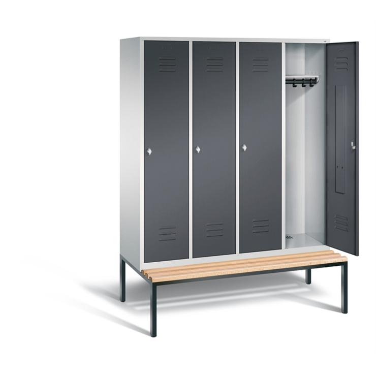 Stahl-Garderobenschrank Classic, als Straßen- und Berufskleidungsschrank, 4 Abteile für 2 Personen, Abteilbreite 300 mm, 2 Türen über 4 Abteile, Korpus aus stabiler Stahlkonstruktion mit hochwertiger Einbrennbeschichtung für hohe UV- und Korrosionsbeständigkeit, innen je Abteil 1 Ablageboden darunter 1 stabile Garderobenstange aus Ovalprofil mit 3 verdrehsicheren Schiebehaken, Schrankboden hinten mit Lüftungsöffnungen für optimale Luftzirkulation, auf 100 mm hohem Sockel, mit... (mehr)? Papersmart hilft Ihnen, den besten Anbieter für Ihren gesamten Warenkorb zu ermitteln.
