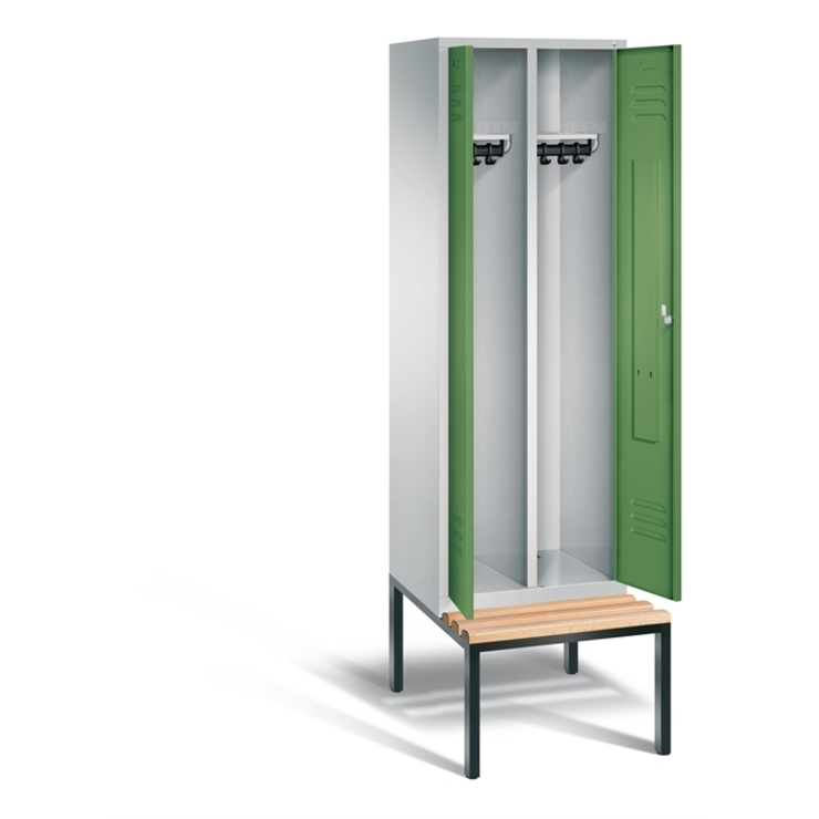 Doppelstöckiger Stahl-Garderobenschrank Evolo, 4 Abteile mit je 2 Fächern, Abteilbreite 300 mm, Korpus aus stabiler Stahlkonstruktion mit hochwertiger Einbrennbeschichtung für hohe UV- und Korrosionsbeständigkeit, innen je Fach 1 Ablageboden, darunter 1 stabile Garderobenstange aus Ovalprofil mit 3 verdrehsicheren Schiebehaken, auf untergebauter Sitzbank, Gestell aus stabilem Vierkant-Stahlrohr 30 x 30 mm, mit verstellbaren Bodengleitern für einfachen Niveauausgleich, 8 Ergonomische... (mehr)? Papersmart hilft Ihnen, den besten Anbieter für Ihren gesamten Warenkorb zu ermitteln.