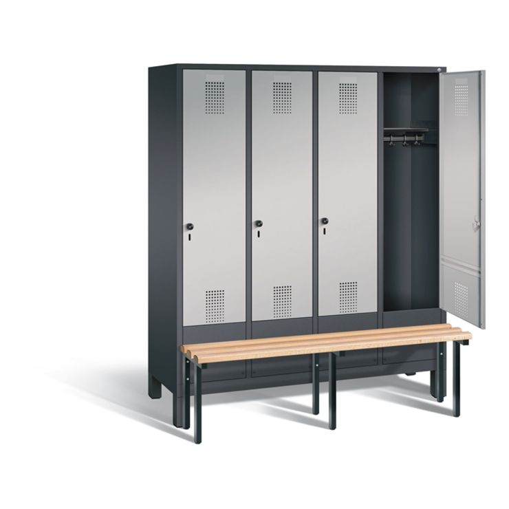 Doppelstöckiger Stahl-Garderobenschrank Resisto, XL, 2 Abteile mit je 2 Fächern, Korpus aus stabiler Stahlkonstruktion mit hochwertiger Einbrennbeschichtung für hohe UV- und Korrosionsbeständigkeit, Spezialtüren aus 1,5 mm Stahl, mit Wölbung nach vorne, absolut stabil und vandalismussicher, mit Anschlagsdämpfer, Türaufhängung durchgängig mit robustem Drehstangen-Scharnier, rechts angeschlagen, innen je Fach 1 stabile Garderobenstange aus Ovalprofil mit 3 verdrehsicheren Schiebehaken,... (mehr)? Papersmart hilft Ihnen, den besten Anbieter für Ihren gesamten Warenkorb zu ermitteln.