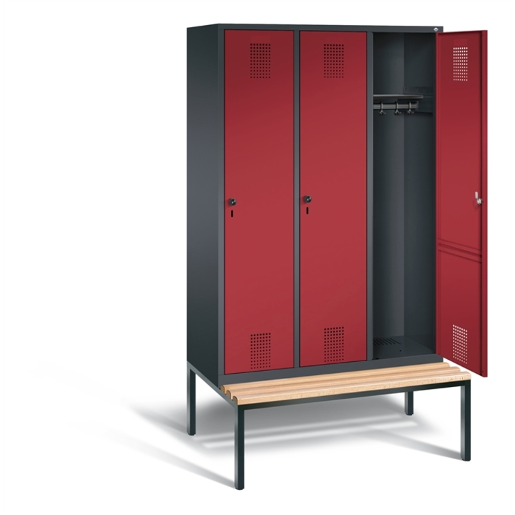 Doppelstöckiger Stahl-Garderobenschrank Evolo, 4 Abteile mit je 2 Fächern, Abteilbreite 400 mm, Korpus aus stabiler Stahlkonstruktion mit hochwertiger Einbrennbeschichtung für hohe UV- und Korrosionsbeständigkeit, innen je Fach 1 Ablageboden, darunter 1 stabile Garderobenstange aus Ovalprofil mit 3 verdrehsicheren Schiebehaken, auf untergebauter Sitzbank, Gestell aus stabilem Vierkant-Stahlrohr 30 x 30 mm, mit verstellbaren Bodengleitern für einfachen Niveauausgleich, 8 Ergonomische... (mehr)? Papersmart hilft Ihnen, den besten Anbieter für Ihren gesamten Warenkorb zu ermitteln.