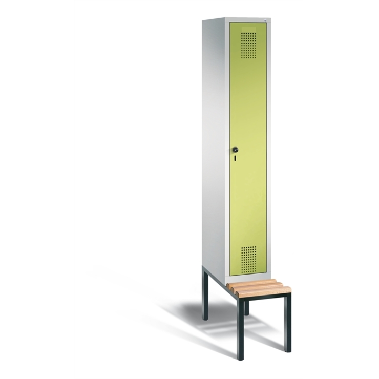 Stahl-Garderobenschrank Classic, auf untergebauter Sitzbank, Gestell aus stabilem Vierkant-Stahlrohr 30 x 30 mm, mit verstellbaren Bodengleitern für einfachen Niveauausgleich, 2 Abteile, Abteilbreite 400 mm, z-förmig unterteilt für 4 Personen, Korpus aus stabiler Stahlkonstruktion mit hochwertiger Einbrennbeschichtung für hohe UV- und Korrosionsbeständigkeit, innen komfortable Hängemöglichkeit langer Kleidungsstücke trotz geringem Platzangebot, je Fach 1 stabile Garderobenstange aus... (mehr)? Papersmart hilft Ihnen, den besten Anbieter für Ihren gesamten Warenkorb zu ermitteln.