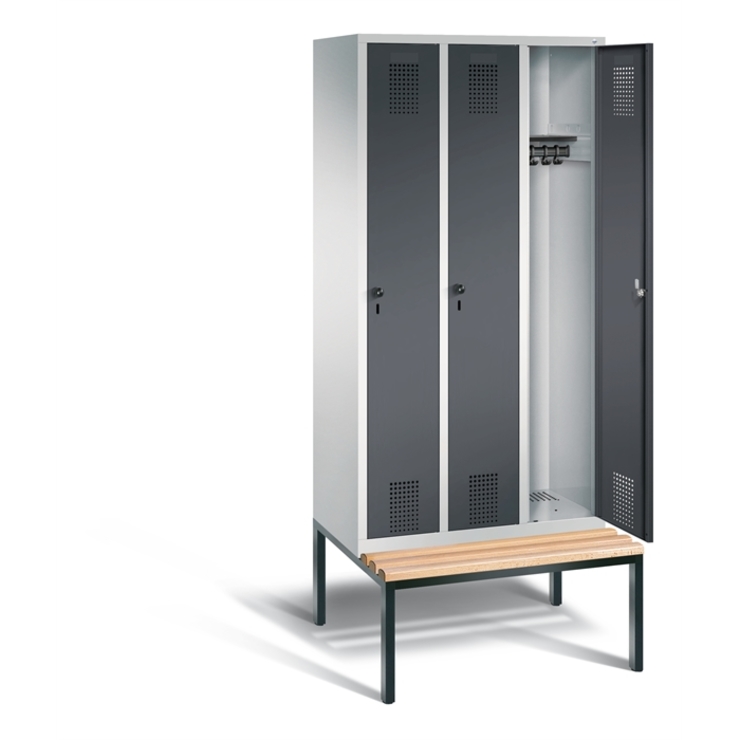 Stahl-Garderobenschrank Evolo, als Kombinationsschrank, 3 Abteile, Abteilbreite 400 mm, mittleres Abteil mit 2 Fächern, Korpus aus stabiler Stahlkonstruktion mit hochwertiger Einbrennbeschichtung für hohe UV- und Korrosionsbeständigkeit, linkes und rechtes Abteil innen mit 1 Ablageboden, darunter 1 stabile Garderobenstange aus Ovalprofil mit 3 verdrehsicheren Schiebehaken, mittleres Abteil innen je Fach 1 stabile Garderobenstange aus Ovalprofil mit 3 verdrehsicheren Schiebehaken,... (mehr)? Papersmart hilft Ihnen, den besten Anbieter für Ihren gesamten Warenkorb zu ermitteln.