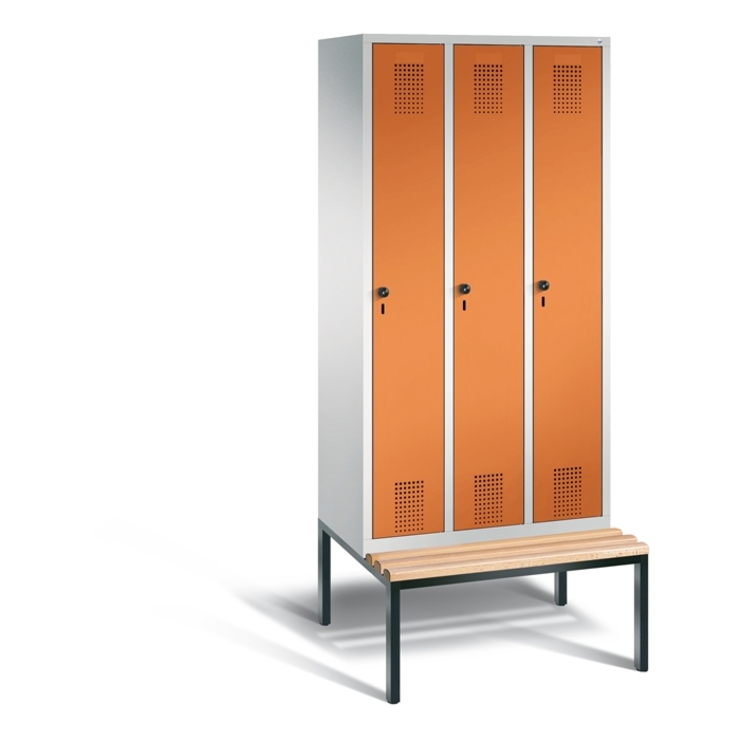 Doppelstöckiger Stahl-Garderobenschrank Evolo, 1 Abteil mit 2 Fächern, Abteilbreite 300 mm, Korpus aus stabiler Stahlkonstruktion mit hochwertiger Einbrennbeschichtung für hohe UV- und Korrosionsbeständigkeit, innen je Fach 1 Ablageboden, darunter 1 stabile Garderobenstange aus Ovalprofil mit 3 verdrehsicheren Schiebehaken, auf untergebauter Sitzbank, Gestell aus stabilem Vierkant-Stahlrohr 30 x 30 mm, mit verstellbaren Bodengleitern für einfachen Niveauausgleich, 2 Ergonomische... (mehr)? Papersmart hilft Ihnen, den besten Anbieter für Ihren gesamten Warenkorb zu ermitteln.