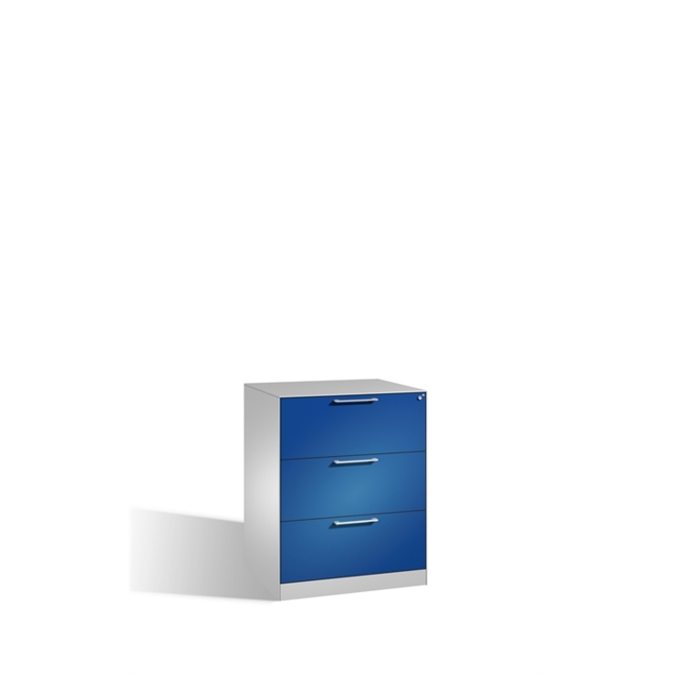 Stahl-Schubladenschrank Asisto, als Karteischrank, Korpus aus stabiler Stahlkonstruktion, körperschallgedämpft für angenehmes Geräuschverhalten, mit filigraner Kantenoptik und hochwertiger Einbrennbeschichtung für hohe UV- Beständigkeit, mit integrierter Niveauregulierung von innen bedienbar, 3 voll ausziehbare Schubladen, 2-bahnig, für Karteikarten DIN A4 quer, mit 3 verstellbaren Pendelblechen je Bahn, 1 Wechselzylinder matt vernickelt mit 2 Schlüsseln, 3 Ergonomische... (mehr)? Papersmart hilft Ihnen, den besten Anbieter für Ihren gesamten Warenkorb zu ermitteln.