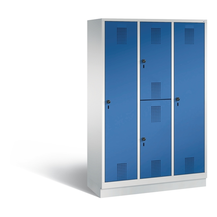 Stahl-Garderobenschrank Evolo, als Mehrzweckschrank, Korpus aus stabiler Stahlkonstruktion mit hochwertiger Einbrennbeschichtung für hohe UV- und Korrosionsbeständigkeit, Türen zueinanderschlagend für gemeinsamen Verschluss, innen mit Mitteltrennwand, links 4 fest eingebaute Böden, rechts 1 Ablageboden und 1 stabile Garderobenstange aus Ovalprofil mit 3 verdrehsicheren Schiebehaken, Schrankboden hinten mit großflächigem Luftdurchlass für optimale Luftzirkulation, auf 100 mm hohem... (mehr)? Papersmart hilft Ihnen, den besten Anbieter für Ihren gesamten Warenkorb zu ermitteln.