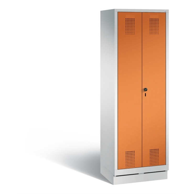 Doppelstöckiger Stahl-Garderobenschrank Evolo, 1 Abteil mit 2 Fächern, Abteilbreite 300 mm, Korpus aus stabiler Stahlkonstruktion mit hochwertiger Einbrennbeschichtung für hohe UV- und Korrosionsbeständigkeit, innen je Fach 1 stabile Garderobenstange aus Ovalprofil mit 3 verdrehsicheren Schiebehaken, auf 100 mm hohem Sockel, mit Kunststoffgleitern als praktischer Schrank- und Fußbodenschutz, vorne zurückgesetzt, 2 Ergonomische Sicherheits-Drehriegel für Vorhängeschlösser inkl.... (mehr)? Papersmart hilft Ihnen, den besten Anbieter für Ihren gesamten Warenkorb zu ermitteln.