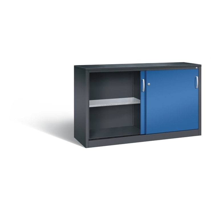 Stahl-Schiebetürenschrank Acurado-2000, Korpus aus stabiler Stahlkonstruktion mit hochwertiger Einbrennbeschichtung für hohe UV-Beständigkeit, mit Kunststoffgleitern als praktischer Schrank- und Fußbodenschutz, hohe Flexibilität der Inneneinrichtung durch Höhenverstellbarkeit im 15 mm Raster, Türen verstärkt für hohe Stabilität, leichtgängige Bedienung durch Leichtlaufrollen in spezieller Schienenführung, mit Mitteltrennwand, 1 Wechselzylinder matt vernickelt mit 2 Schlüsseln, 2... (mehr)? Papersmart hilft Ihnen, den besten Anbieter für Ihren gesamten Warenkorb zu ermitteln.