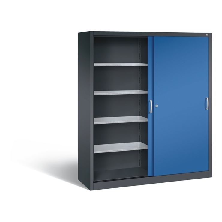 Stahl-Schiebetürenschrank Acurado-2000, Korpus aus stabiler Stahlkonstruktion mit hochwertiger Einbrennbeschichtung für hohe UV-Beständigkeit, mit Kunststoffgleitern als praktischer Schrank- und Fußbodenschutz, hohe Flexibilität der Inneneinrichtung durch Höhenverstellbarkeit im 15 mm Raster, Türen verstärkt für hohe Stabilität, leichtgängige Bedienung durch Leichtlaufrollen in spezieller Schienenführung, mit Mitteltrennwand, 4 Einlegeböden aus Stahl, verzinkt, 2 fach verstärkt, mit... (mehr)? Papersmart hilft Ihnen, den besten Anbieter für Ihren gesamten Warenkorb zu ermitteln.