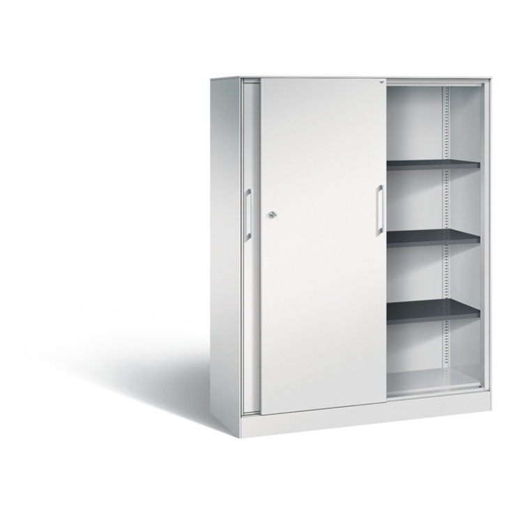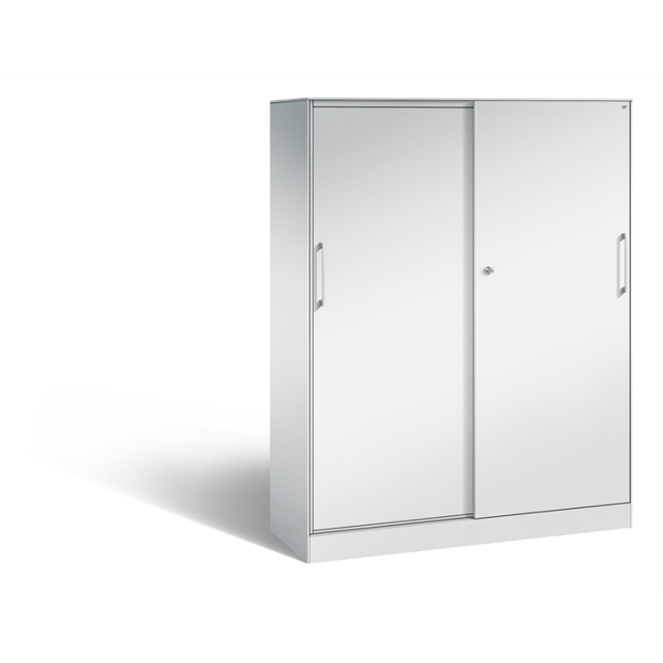 Stahl-Schiebetürenschrank Asisto, als Sideboard, Korpus aus stabiler Stahlkonstruktion mit filigraner Kantenoptik und hochwertiger Einbrennbeschichtung für hohe UV-Beständigkeit, mit integrierter Niveauregulierung, bequem von innen bedienbar, hohe Flexibilität der Inneneinrichtung durch Höhenverstellbarkeit im 15 mm Raster, 1 Wechselzylinder matt vernickelt mit 2 Schlüsseln, 2 Ergonomische Design-Bügelgriffe für einfache Bedienung, aus Metall, matt vernickelt, 1 Abdeckplatte aus Stahl,... (mehr)? Papersmart hilft Ihnen, den besten Anbieter für Ihren gesamten Warenkorb zu ermitteln.
