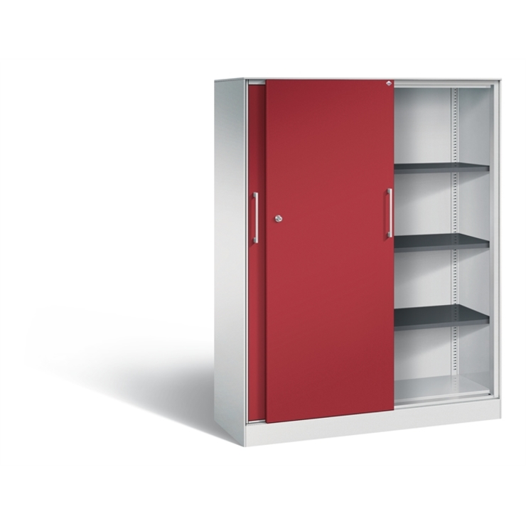 Stahl-Schiebetürenschrank Asisto, Korpus aus stabiler Stahlkonstruktion mit filigraner Kantenoptik und hochwertiger Einbrennbeschichtung für hohe UV-Beständigkeit, mit integrierter Niveauregulierung, bequem von innen bedienbar, hohe Flexibilität der Inneneinrichtung durch Höhenverstellbarkeit im 15 mm Raster, 1 Wechselzylinder matt vernickelt mit 2 Schlüsseln, 2 Ergonomische Design-Bügelgriffe für einfache Bedienung, aus Metall, matt vernickelt, 1 Abdeckplatte aus Stahl, 2 Stahltüren... (mehr)? Papersmart hilft Ihnen, den besten Anbieter für Ihren gesamten Warenkorb zu ermitteln.