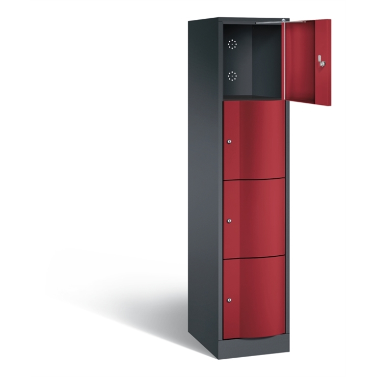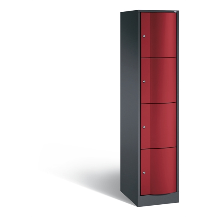 Fächerschrank mit Stahlblech-Sockel, teilverzinkt, 100 mm hoch (Gesamthöhe 1800 mm) • Viele Fächer auf kleinstem Raum Wahlweise mit 3, 4 oder 5 Fächern übereinander bei 1, 2, 3 oder 4 Abteilen nebeneinander. Lichte Fachmaße: B 230xT 465 mm. (B 330 mm auf Anfrage lieferbar.) • Langlebige Stahlblechkonstruktion Erhöhter Korrosionsschutz durch Schrankfüße aus Kunststoff. • Abschließbare Türen Schließung über Zylinderschlösser mit je 2 Schlüsseln. Rechts angeschlagen. Einwandige Ausführung... (mehr)? Papersmart hilft Ihnen, den besten Anbieter für Ihren gesamten Warenkorb zu ermitteln.