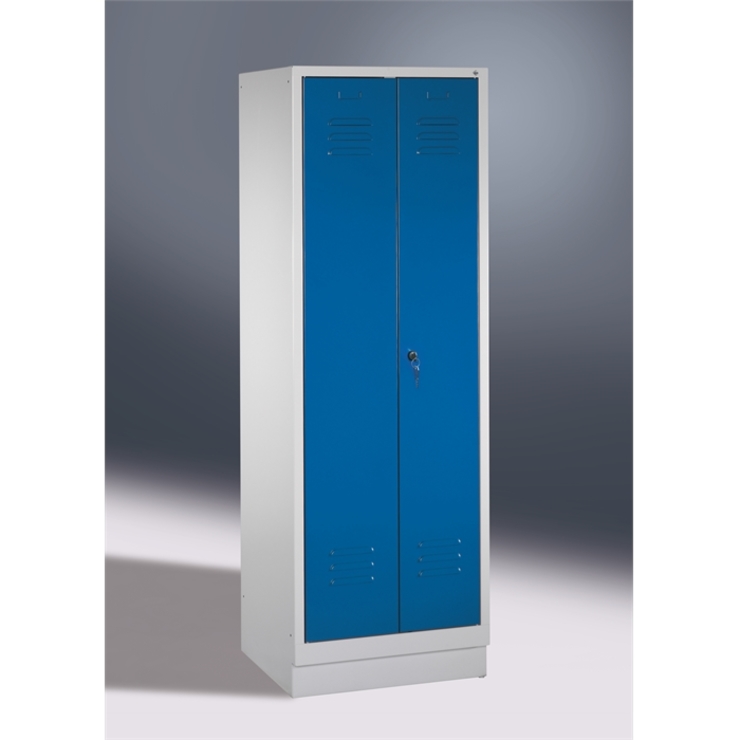 Garderobenschrank Serie Classic mit 150 mm hohen Füßen, Höhe 1850 mm, lichtgrau/enzianblau • Stabile Stahlblechkonstruktion Erhöhter Korrosionsschutz durch Schrankfüße aus Kunststoff. • Praktische Türen Rechts angeschlagen mit Anschlagsdämpfer. In Drehbolzen gelagert mit senkrechter Kastenverstärkung. Mit Drehriegelverschluss zur Verwendung eines Vorhängeschlosses. Mit Lüftungsschlitz und eingestanztem Etikettenrahmen. • Durchdachtes Innenkonzept Einsteckbarer Hutboden. Kleiderstange... (mehr)? Papersmart hilft Ihnen, den besten Anbieter für Ihren gesamten Warenkorb zu ermitteln.