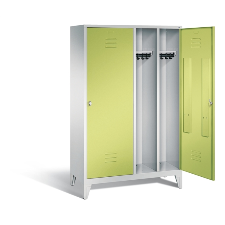Stahl-Garderobenschrank Classic, 2 Abteile mit 5 Fächern, Abteilbreite 400 mm, Korpus aus stabiler Stahlkonstruktion mit hochwertiger Einbrennbeschichtung für hohe UV- und Korrosionsbeständigkeit, auf 150 mm hohen Füßen aus Kunststoff für erweiterten Korrosionsschutz, 10 3-Riegel Verschluß mit Schließstangen für höhere Einbruchsicherheit Schrägdachausführung, Rückwand 200 mm höher, nichts bleibt unbemerkt auf dem Schrank liegen, Türen mit Anschlagsdämpfer, Türaufhängung in Drehbolzen,... (mehr)? Papersmart hilft Ihnen, den besten Anbieter für Ihren gesamten Warenkorb zu ermitteln.