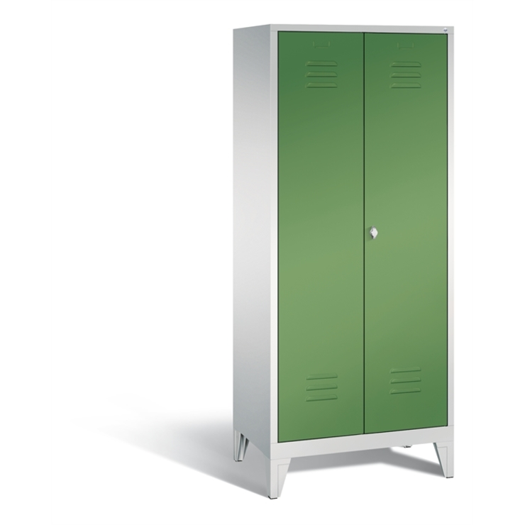 Stahl-Garderobenschrank Evolo, als Straßen- und Berufskleidungsschrank, 2 Abteile für 1 Person, Abteilbreite 300 mm, Türen zueinanderschlagend für gemeinsamen Verschluss, Korpus aus stabiler Stahlkonstruktion mit hochwertiger Einbrennbeschichtung für hohe UV- und Korrosionsbeständigkeit, innen 1 durchgehender Ablageboden, darunter je Abteil 1 stabile Garderobenstange aus Ovalprofil mit 3 verdrehsicheren Schiebehaken, Schrankboden hinten mit großflächigem Luftdurchlass für optimale... (mehr)? Papersmart hilft Ihnen, den besten Anbieter für Ihren gesamten Warenkorb zu ermitteln.