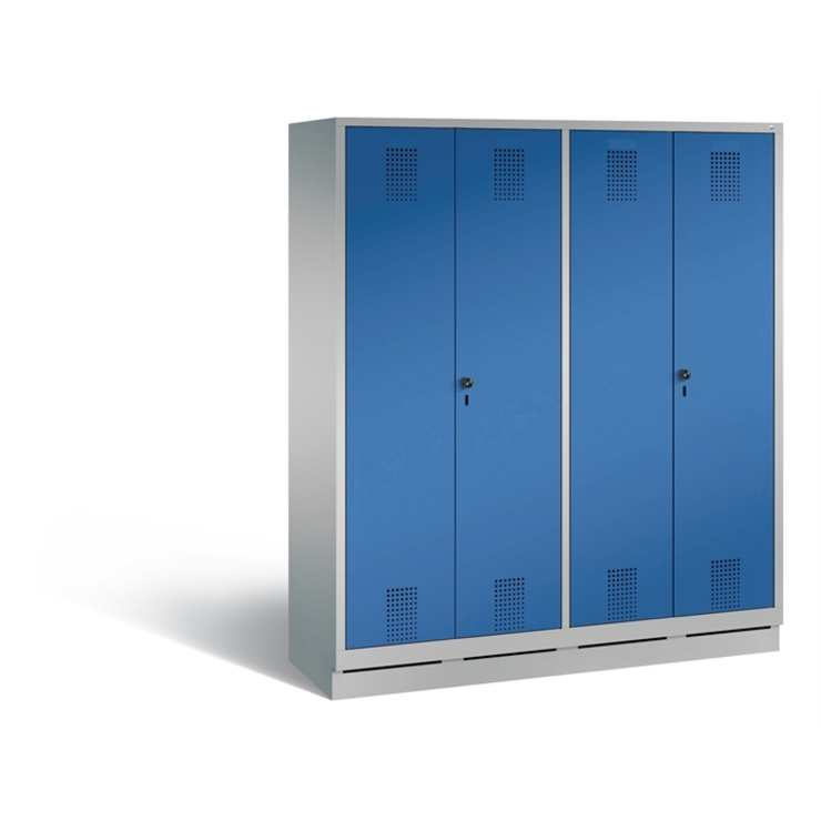 Stahl-Garderobenschrank Evolo, als Mehrzweckschrank, Korpus aus stabiler Stahlkonstruktion mit hochwertiger Einbrennbeschichtung für hohe UV- und Korrosionsbeständigkeit, Türen zueinanderschlagend für gemeinsamen Verschluss, innen mit Mitteltrennwand, je Abteil 4 Einlegeböden, Schrankboden hinten mit Belüftungsöffnungen, auf 100 mm hohem Sockel, mit Kunststoffgleitern als praktischer Schrank- und Fußbodenschutz, vorne zurückgesetzt, 1 Ergonomischer Sicherheits-Drehriegel für... (mehr)? Papersmart hilft Ihnen, den besten Anbieter für Ihren gesamten Warenkorb zu ermitteln.