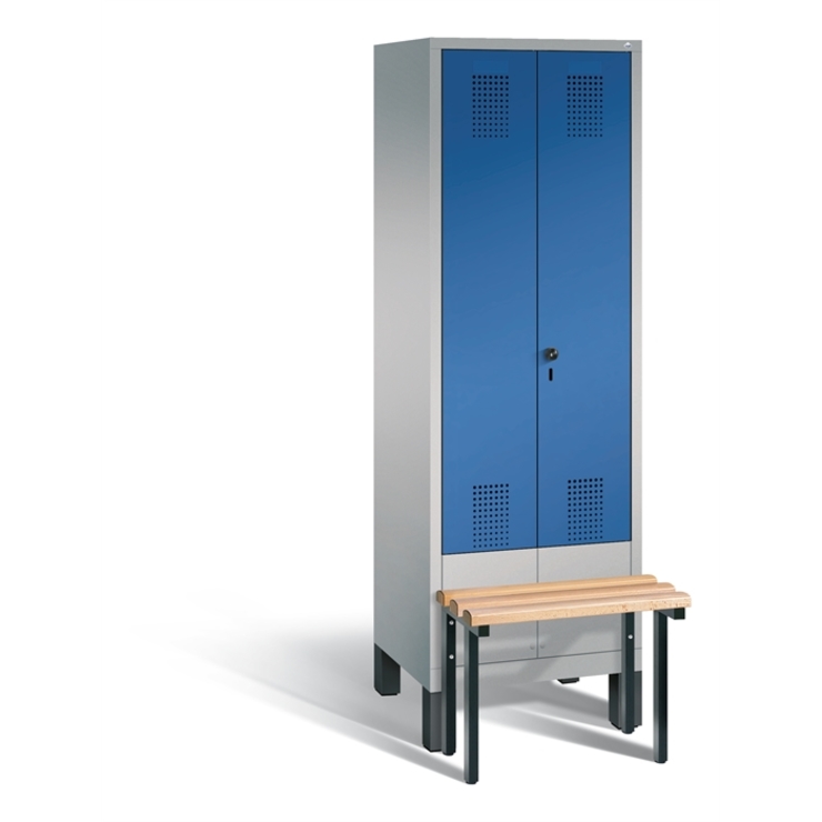 Stahl-Garderobenschrank Evolo, als Straßen- und Berufskleidungsschrank, 2 Abteile für 1 Person, Abteilbreite 300 mm, Türen zueinanderschlagend für gemeinsamen Verschluss, Korpus aus stabiler Stahlkonstruktion mit hochwertiger Einbrennbeschichtung für hohe UV- und Korrosionsbeständigkeit, innen 1 durchgehender Ablageboden, darunter je Abteil 1 stabile Garderobenstange aus Ovalprofil mit 3 verdrehsicheren Schiebehaken, Schrankboden hinten mit großflächigem Luftdurchlass für optimale... (mehr)? Papersmart hilft Ihnen, den besten Anbieter für Ihren gesamten Warenkorb zu ermitteln.