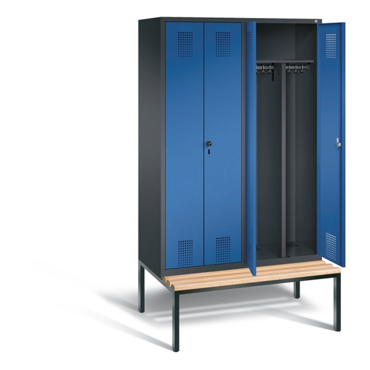 Doppelstöckiger Stahl-Garderobenschrank Evolo, 4 Abteile mit je 2 Fächern, Abteilbreite 300 mm, Korpus aus stabiler Stahlkonstruktion mit hochwertiger Einbrennbeschichtung für hohe UV- und Korrosionsbeständigkeit, innen je Fach 1 Ablageboden, darunter 1 stabile Garderobenstange aus Ovalprofil mit 3 verdrehsicheren Schiebehaken, auf untergebauter Sitzbank, Gestell aus stabilem Vierkant-Stahlrohr 30 x 30 mm, mit verstellbaren Bodengleitern für einfachen Niveauausgleich, 8 Ergonomische... (mehr)? Papersmart hilft Ihnen, den besten Anbieter für Ihren gesamten Warenkorb zu ermitteln.