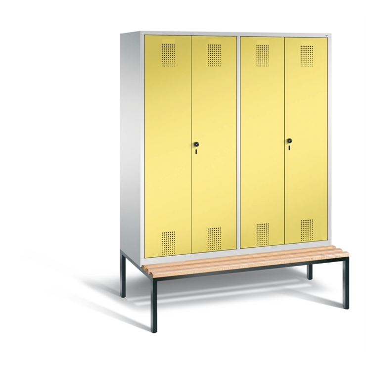 Stahl-Garderobenschrank Evolo, als Straßen- und Berufskleidungsschrank, 4 Abteile für 2 Personen, Abteilbreite 300 mm, Türen paarweise zueinanderschlagend für gemeinsamen Verschluss, Korpus aus stabiler Stahlkonstruktion mit hochwertiger Einbrennbeschichtung für hohe UV- und Korrosionsbeständigkeit, innen je Doppelabteil 1 durchgehender Ablageboden, darunter je Abteil 1 stabile Garderobenstange aus Ovalprofil mit 3 verdrehsicheren Schiebehaken, Schrankboden hinten mit großflächigem... (mehr)? Papersmart hilft Ihnen, den besten Anbieter für Ihren gesamten Warenkorb zu ermitteln.