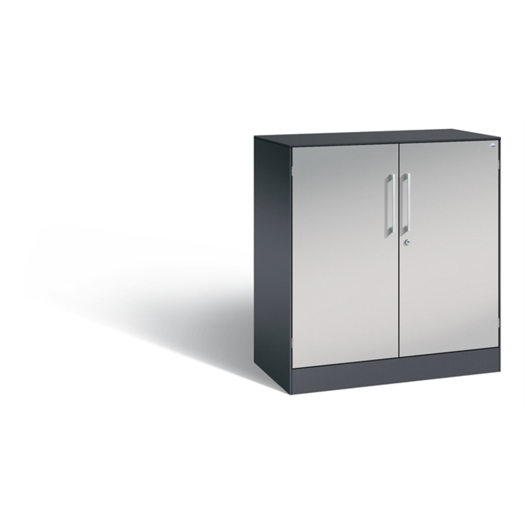 Stahl-Flügeltürenschrank Asisto, Korpus aus stabiler Stahlkonstruktion mit filigraner Kantenoptik und hochwertiger Einbrennbeschichtung für hohe UV-Beständigkeit, mit integrierter Niveauregulierung, bequem von innen bedienbar, hohe Flexibilität der Inneneinrichtung durch Höhenverstellbarkeit im 15 mm Raster, 1 Wechselzylinder matt vernickelt mit 2 Schlüsseln, 2 Ergonomische Design-Bügelgriffe für einfache Bedienung, aus Metall, matt vernickelt, 2 Stahltüren doppelwandig, gedämmt für... (mehr)? Papersmart hilft Ihnen, den besten Anbieter für Ihren gesamten Warenkorb zu ermitteln.