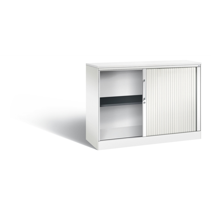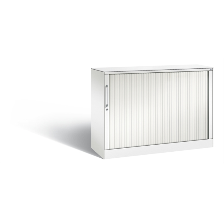 Stahl-Rollladenschrank Asisto, Korpus aus stabiler Stahlkonstruktion mit filigraner Kantenoptik und hochwertiger Einbrennbeschichtung für hohe UV-Beständigkeit, mit integrierter Niveauregulierung, bequem von innen bedienbar, hohe Flexibilität der Inneneinrichtung durch Höhenverstellbarkeit im 15 mm Raster, 1 Wechselzylinder matt vernickelt mit 2 Schlüsseln, 1 Ergonomischer Design-Bügelgriff für einfache Bedienung, aus Metall, matt vernickelt, 4 Einlegeböden aus Stahl lackiert, mit... (mehr)? Papersmart hilft Ihnen, den besten Anbieter für Ihren gesamten Warenkorb zu ermitteln.