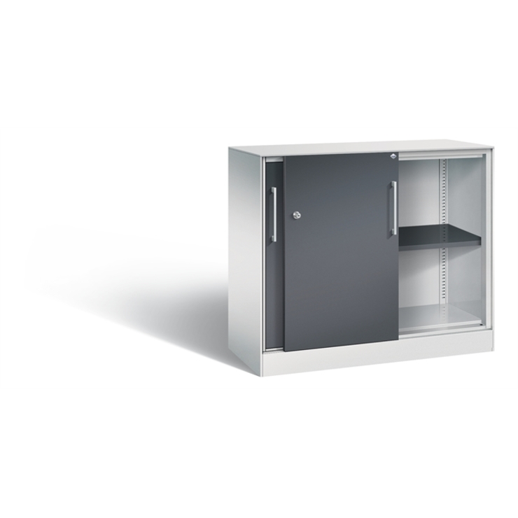 Stahl-Schiebetürenschrank Acurado-2000, Korpus aus stabiler Stahlkonstruktion mit hochwertiger Einbrennbeschichtung für hohe UV-Beständigkeit, mit Kunststoffgleitern als praktischer Schrank- und Fußbodenschutz, hohe Flexibilität der Inneneinrichtung durch Höhenverstellbarkeit im 15 mm Raster, Türen verstärkt für hohe Stabilität, leichtgängige Bedienung durch Leichtlaufrollen in spezieller Schienenführung, 1 Wechselzylinder matt vernickelt mit 2 Schlüsseln, 2 Ergonomische Bügelgriffe... (mehr)? Papersmart hilft Ihnen, den besten Anbieter für Ihren gesamten Warenkorb zu ermitteln.